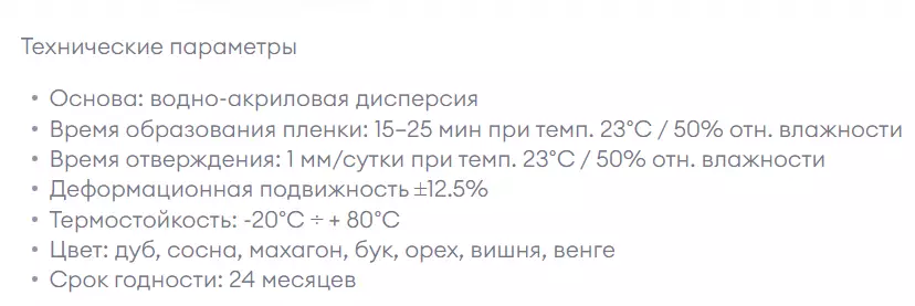 Герметик используемый только для древесины в целях снижение теплопотери и устранения попадания влаги. Повышенная адгезия, т.е. качественная сцепка со строительными материалами. Т.к. герметик не впитывает жидкость, его можно наносить на поверхность с сухим или влажным основанием. В случае если вы испачкали окружающие элементы, герметик легко отмыть водой. После затвердения герметик водоустойчив, поддается окрашиванию, не боится перепадов температуры. Возможно наносить в любых открытых и закрытых помещениях.