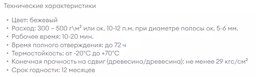 - Конечная прочность на сдвиг (древесина/древесина): не менее 29 кгс/см²