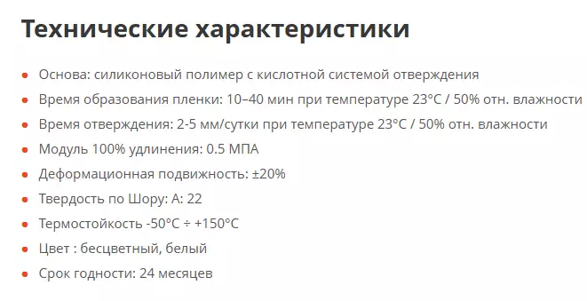 - Основа: силиконовый полимер с кислотной системой отверждения