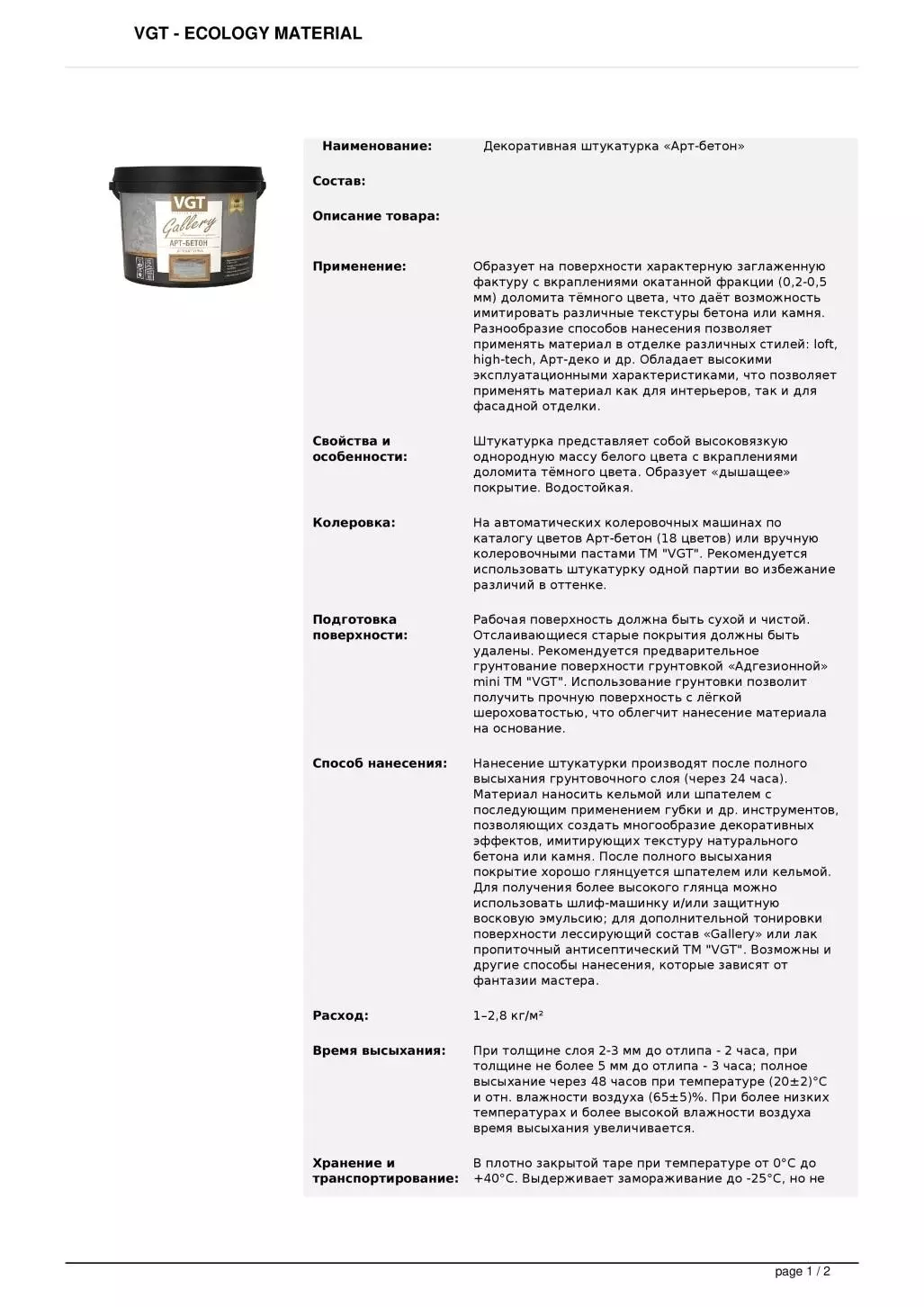 Рабочая поверхность должна быть сухой и чистой. Отслаивающиеся старые покрытия должны быть удалены. Рекомендуется предварительное грунтование поверхности грунтовкой «адгезионной» “mini” ТМ “VGT”. Использование грунтовки позволит получить прочную поверхность с лёгкой шероховатостью, что облегчит нанесение материала на основание.