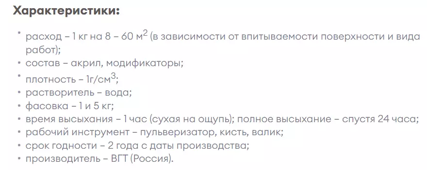 - расход – 1 кг на 8 – 60 м2 (в зависимости от впитываемости поверхности и вида работ);