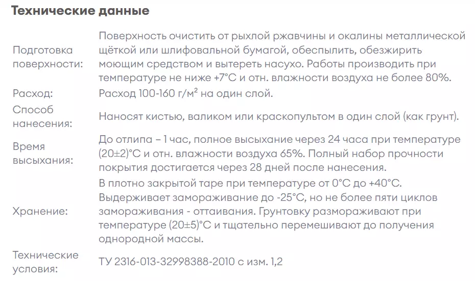 Поверхность очистить от рыхлой ржавчины и окалины металлической щёткой или шлифовальной бумагой, обеспылить, обезжирить моющим средством и вытереть насухо. Работы производить при температуре не ниже +7°С и отн. влажности воздуха не более 80%.