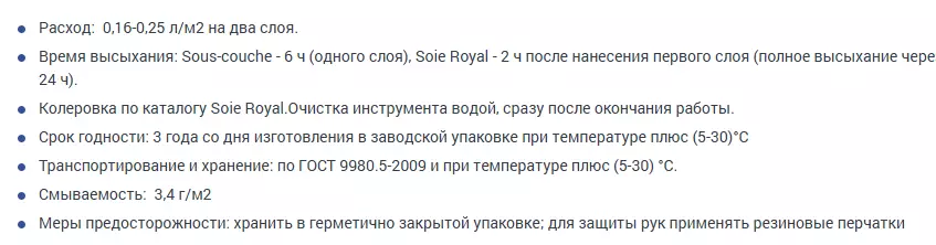 - Время высыхания: Sous-couche - 6 ч (одного слоя), Soie Royal - 2 ч после нанесения первого слоя (полное высыхание через 24 ч).